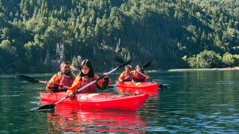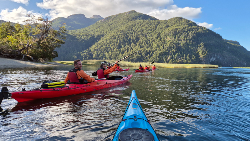 Las excursiones y expediciones en Kayaks de Travesía se realizan en circuitos predeterminados con salidas rápidas (de 1h), cortas (de 2hs), media (4hs) y full-day en la que salen de Lago Verde y terminan en Lago Futalaufquen (aprox. 6hs). También se realizan travesías de varios días remando por diversos lagos y ríos de la zona. Las salidas son lideradas por guías habilitados por Prefectura Naval Argentina y la Administración de Parques Nacionales, con certificaciones internacionales.